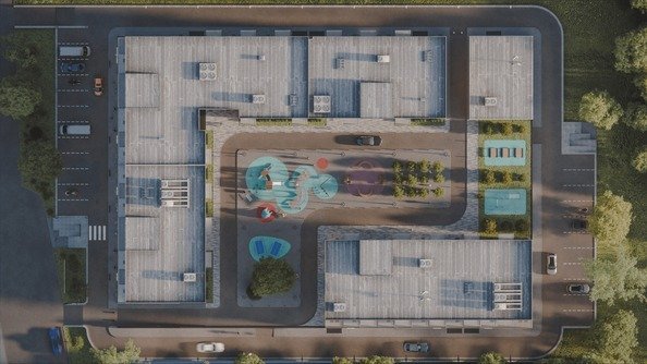 Всё для комфортного и безопасного проживания: подземный и наземный паркинг, спортзал, детская площадка, видеонаблюдение, зоны для спокойного и активного отдыха, коммерческие помещения и др.