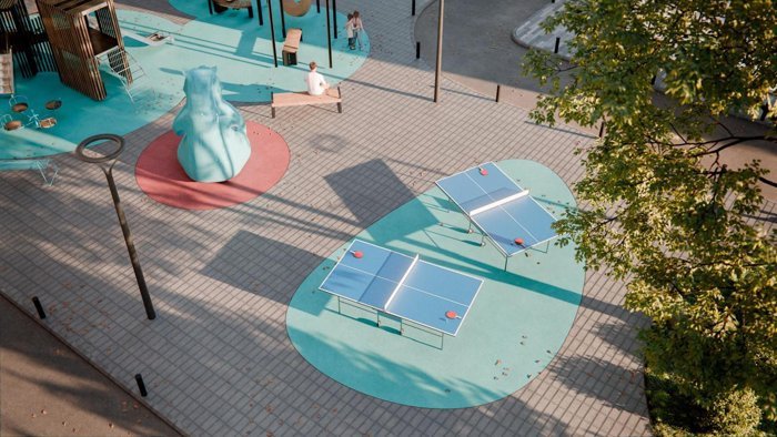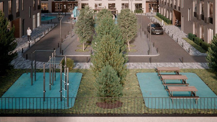 Workout-площадка, зона для пинг-понга, зона пикника.