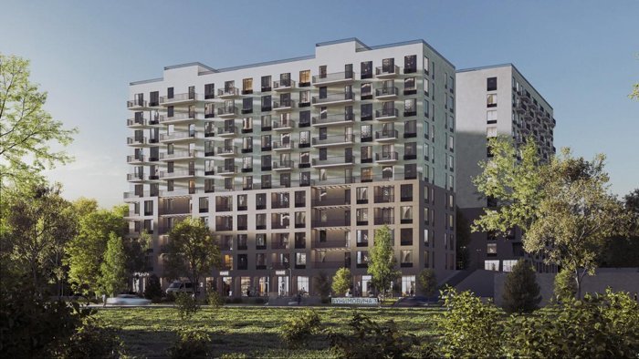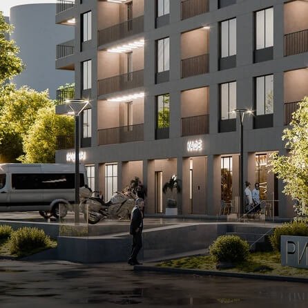 Архитектура жилого комплекса выполнена в минималистичном и современном дизайне