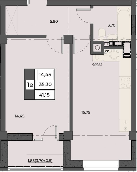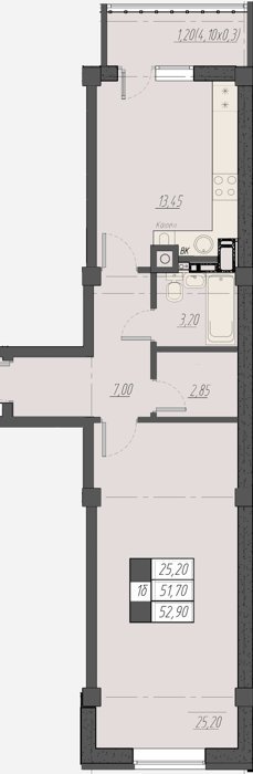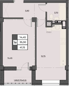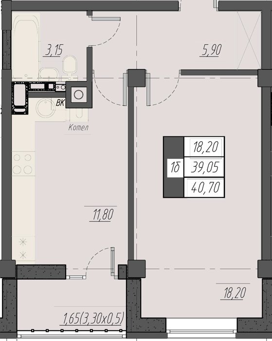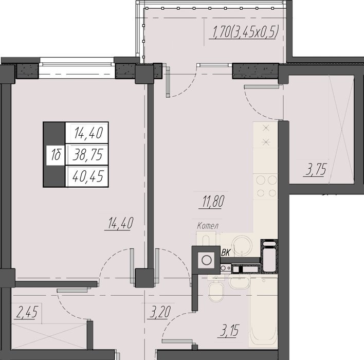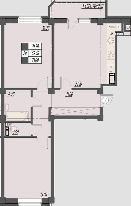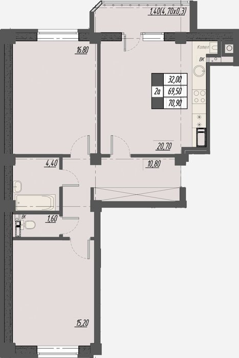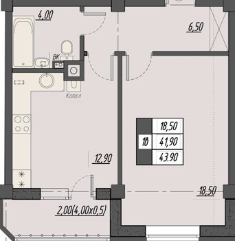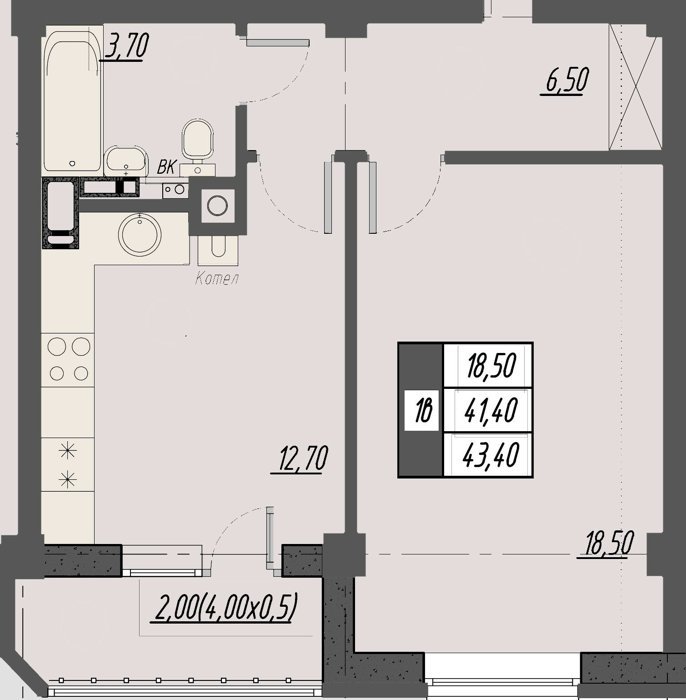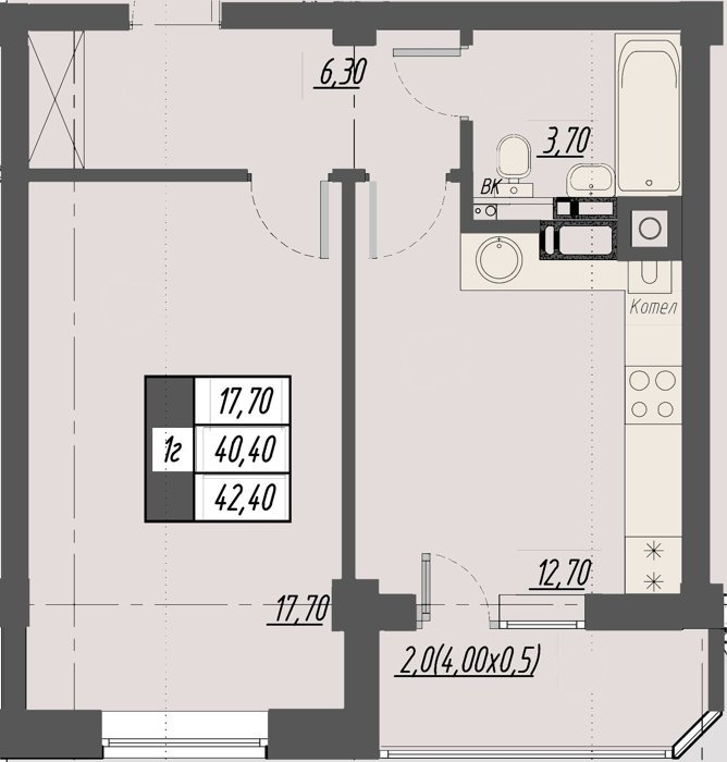 Площадь от 40.7 м2
