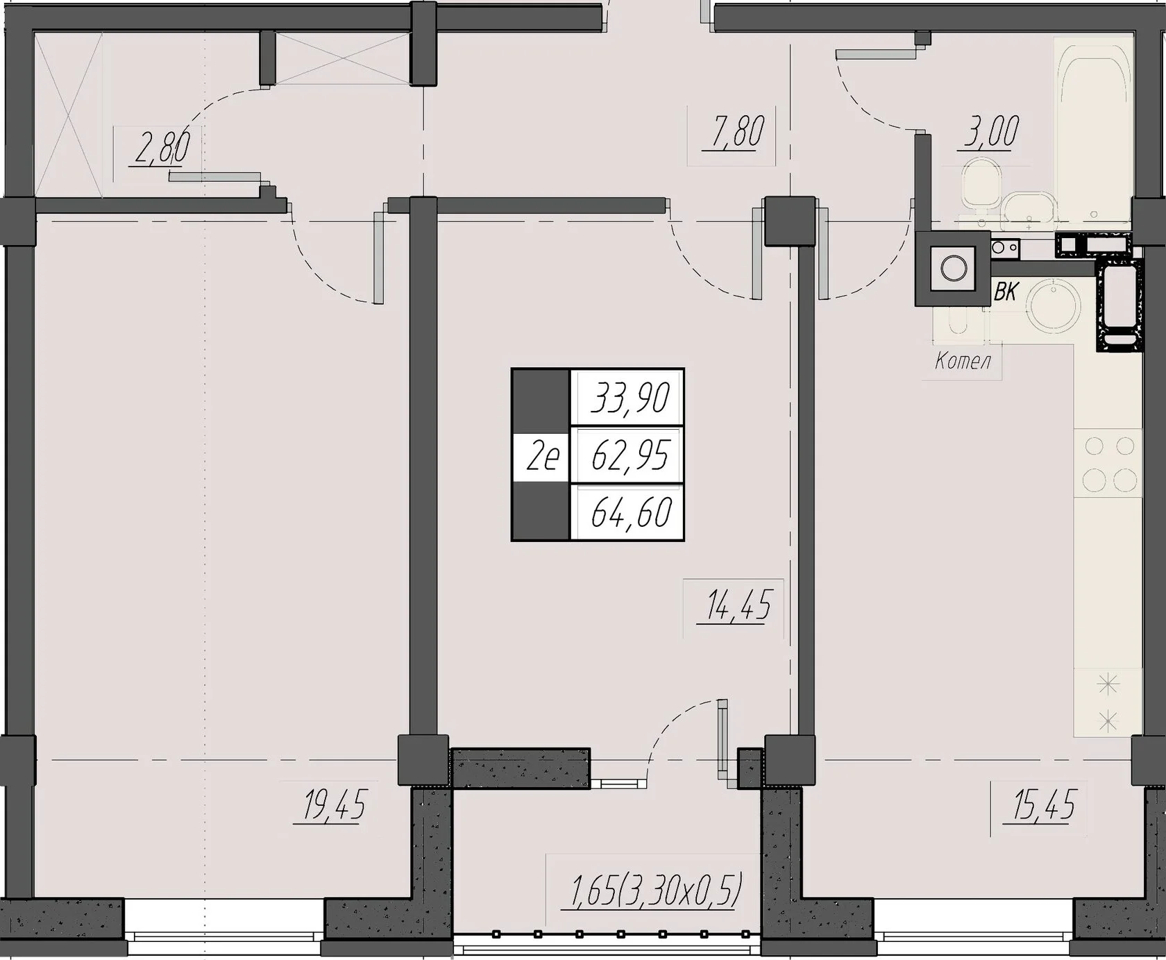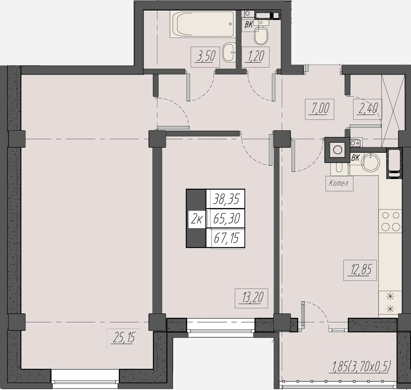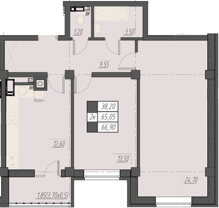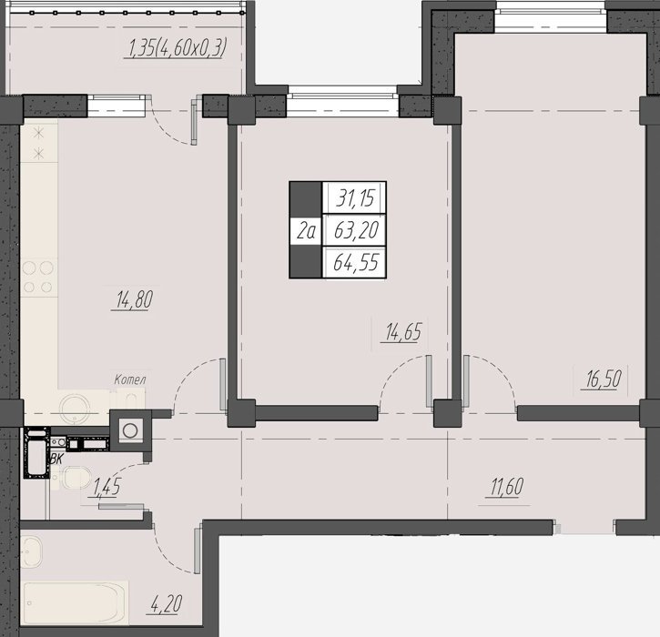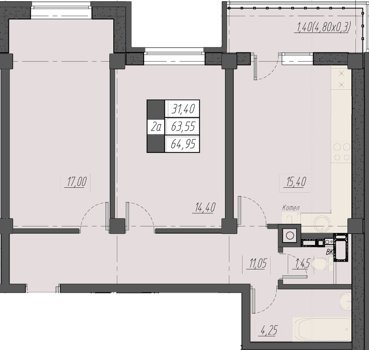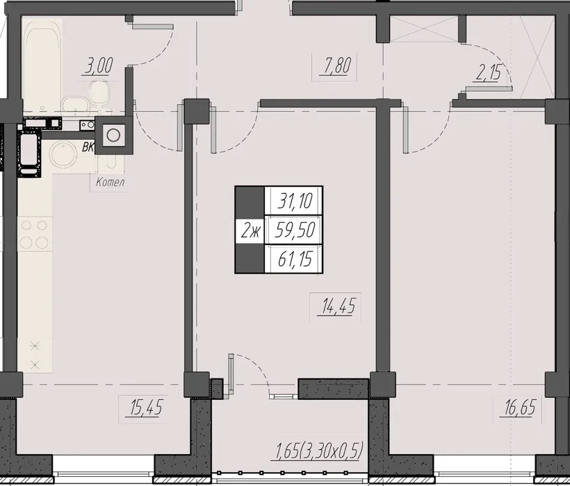 Площадь от 61.15 м2