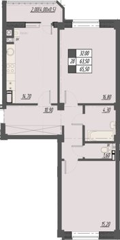 Площадь от 36.7 м2