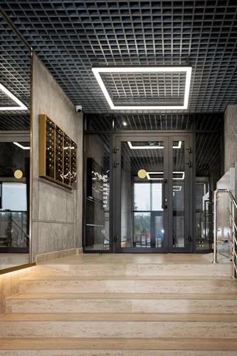 Фасады и входные группы очень стильные и лаконичные, функциональны для всех жильцов. Просторный холл, в котором оборудованы места для велосипедов и колясок, а также места для отдыха и встреч.