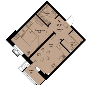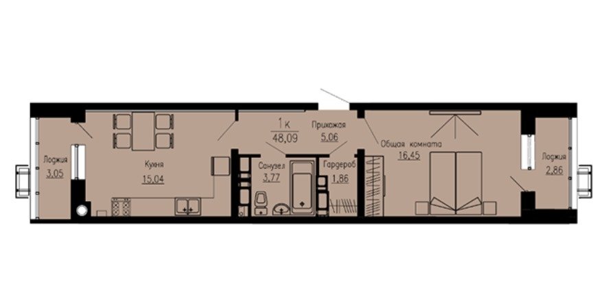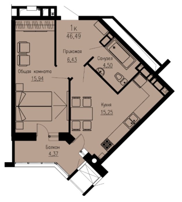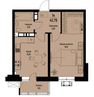 Площадь от 42.4 м2
