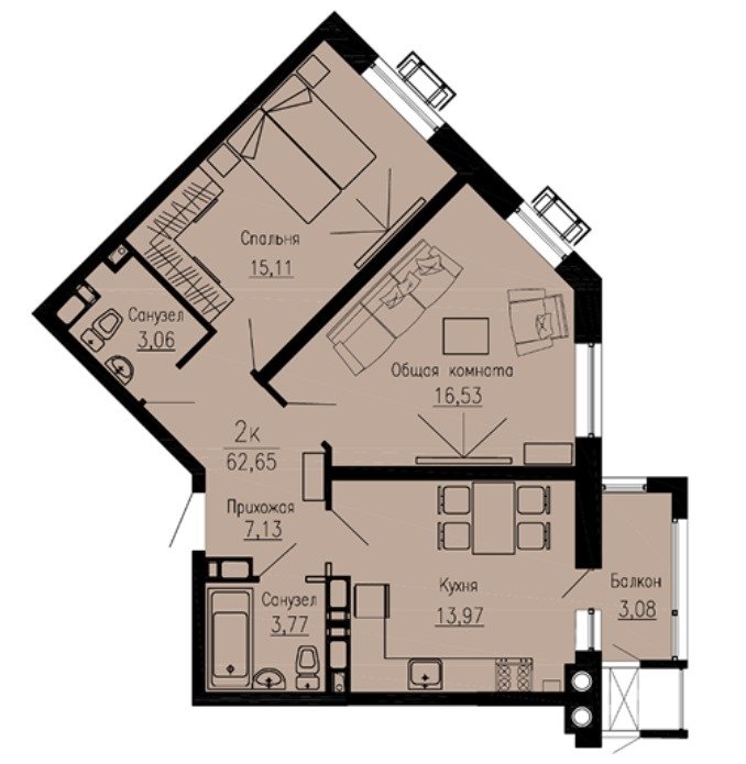 Площадь от 52 м2