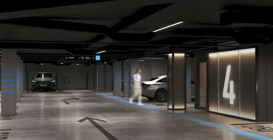 Подземный охраняемый паркинг с лифтом. Быстрый доступ к своему этажу. Без дождя, ветра и компромиссов. Комфорт и безопасность — с первого метра.