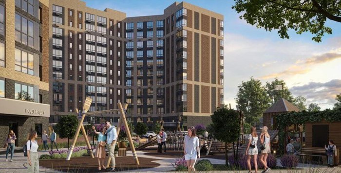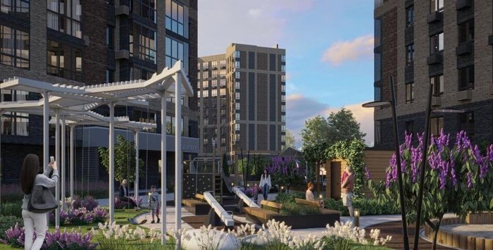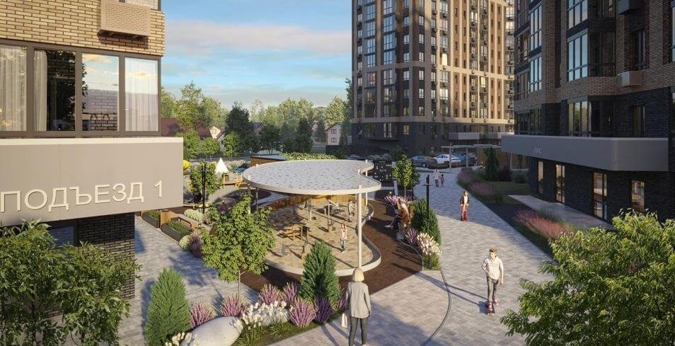 Баланс природы и города создает комфортную среду для жизни. Интересные решения оформления придомовой территории, зоны отдыха, детские и спортивные площадки с фокусом на эргономичности.
